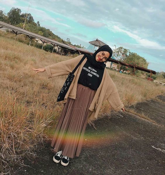 Males pakai pakaian formal dan berat sperti jeans atau denim? Kalian bisa menggunakan kaos yang nyaman ditubuh kalian baik itu menggunakan kaos polos atau kaos sablon custom tumblr lalu dikombinasikan dengan rok tutu yang panjang. Tampilan fashion influencer ini bisa teman-teman jadikan refrensi untuk gaya modis ke kampus loh. Gunakan sneakers/ flatshoes atau kacamata transparan untuk mempercantik tampilan kalian yah.