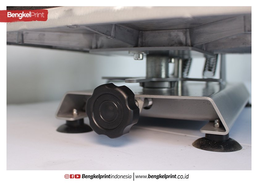 Mesin press kaos ini memliki settingan adjustment mould pada bagian bawah alas press kaos yang mudah mudah dalam penyesuaian untuk mengganti mould press diantaranya :