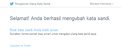 6. Selamat Anda sekarang sudah berhasil reset password twitter Anda. Silahkan tersenyum kembali.