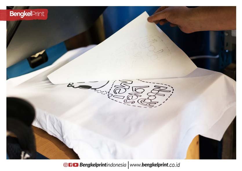 • Usai dipress, angkat kertas desain kaos secara perlahan, dan sablon kaos sublimasi telah selesai.