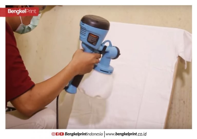 - Setelah cairan treatment sublime sudah siap, mulailah untuk menyemptokan pada permukaan kaos
