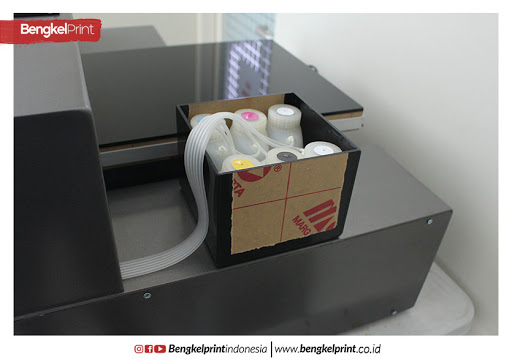 - lebih mudah untuk memantau tinggal seberapa tinta textile DTG yang ada pada wadah botol tinta di bagian belakang Printer DTG.