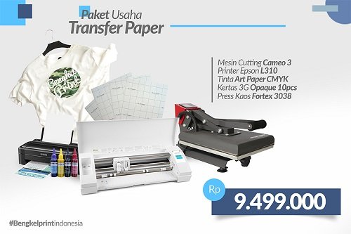 Bengkel Print salah satu pusat jual paket usaha sablon kaos termurah dengan men-jual paket usaha sablon kaos transfer paper 3g opaque terlengkap di Surabaya. Hanya dengan “ harga paket usaha sablon kaos transfer paper 3g opaque Rp. 9.499.000 “ anda sudah bisa membawa paket lengkap siap pakai usaha sablon kaos transfer paper serta mendapat FREE pelatihan mesin sampai bisa. Berikut dibawah ini ulasan diskripsi produk paket usaha sablon kaos transfer paper 3g opaque yang didapatkan :
