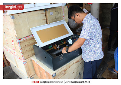 - Bersihkan secara berkala di bagian lensa mesin grafir, yaitu di 2 lensa pantul dan 1 lensa fokus yang berfungsi untuk media pemantulan sinar laser dari tabung laser menuju material, supaya sinar laser senantiasa fokus dan efektif dalam pengoperasiannya.